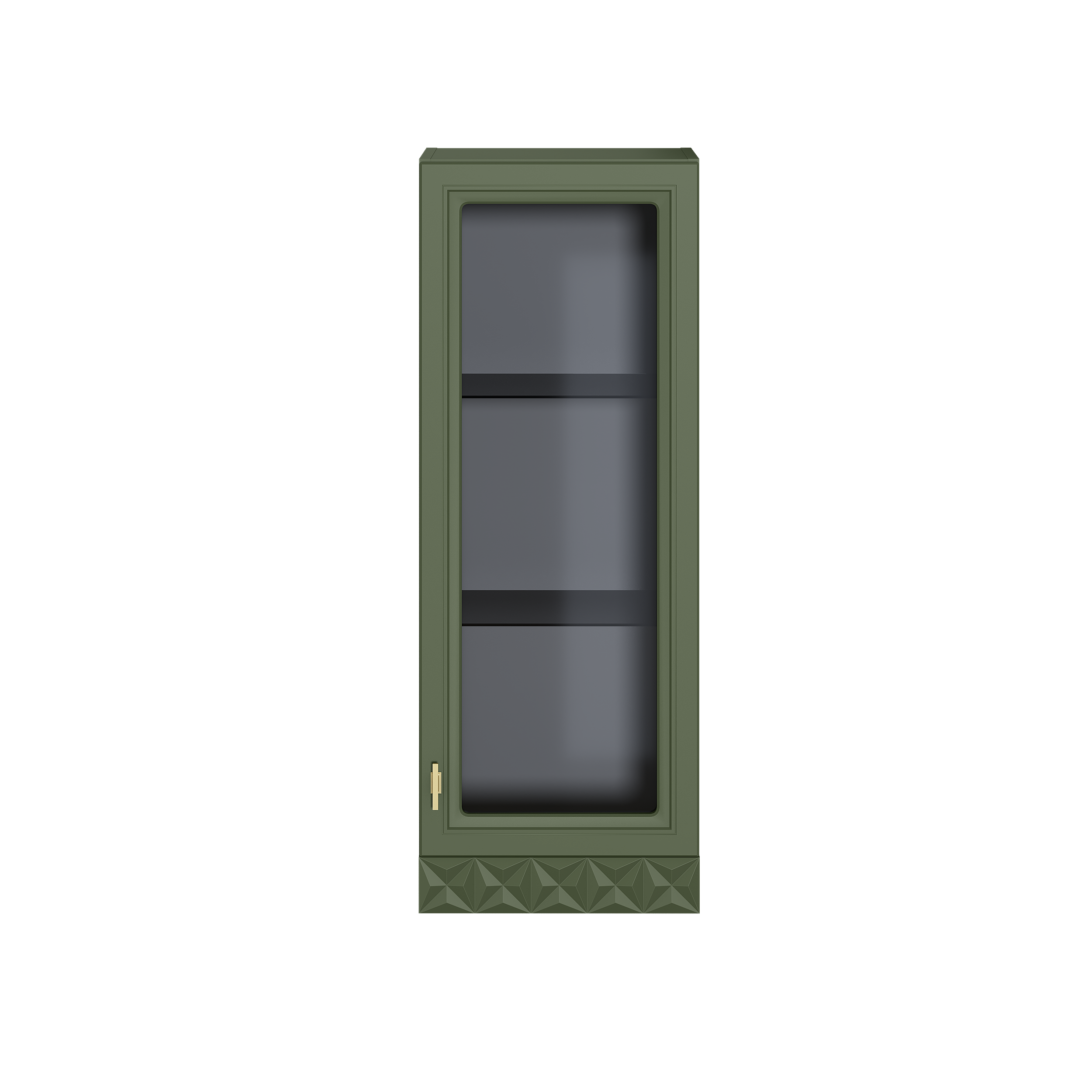 Шкаф-витрина Марион 16.397.01 дымчатый зеленый K521, олива шагрень AG 1050 ПВХ (собирается на любую сторону)