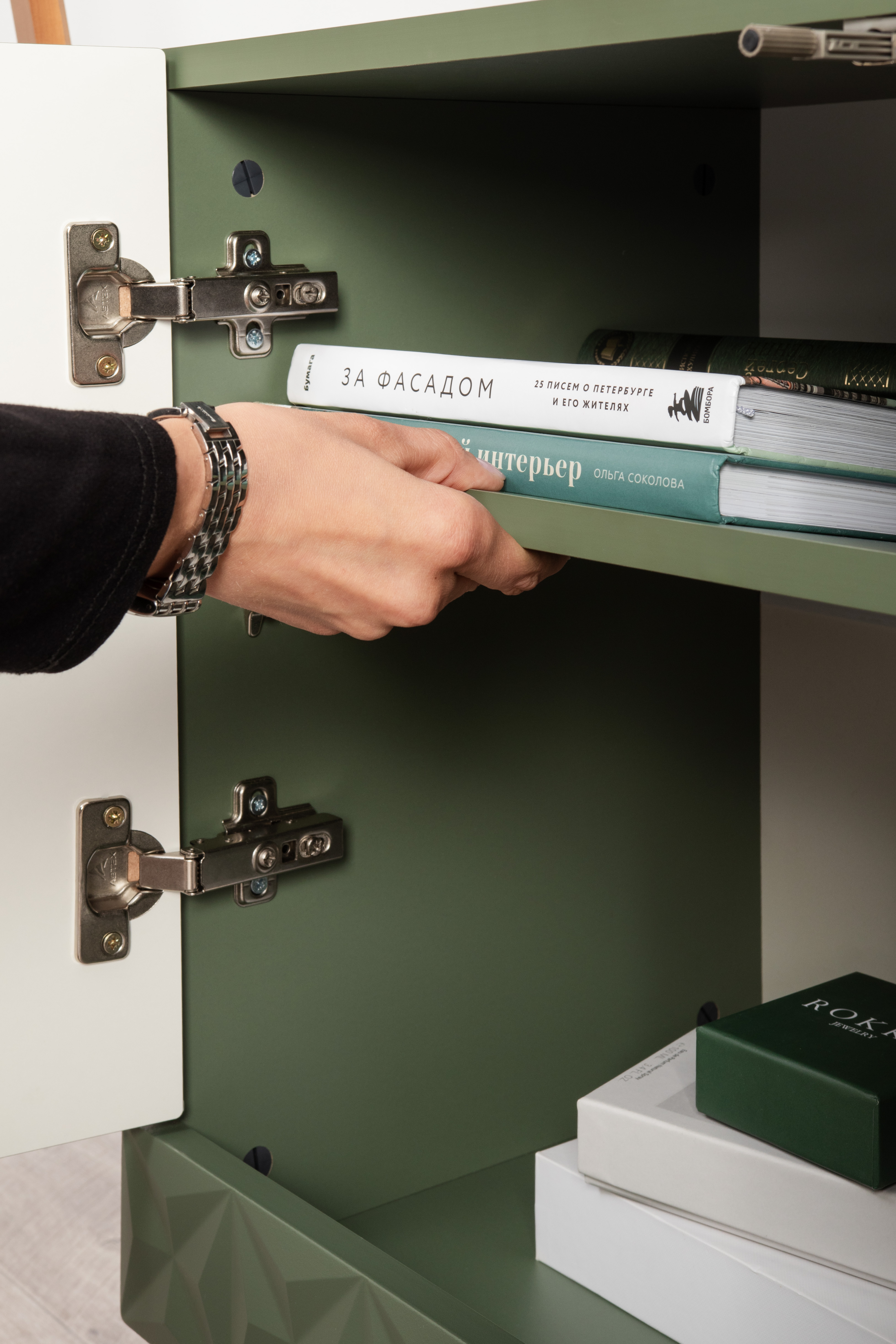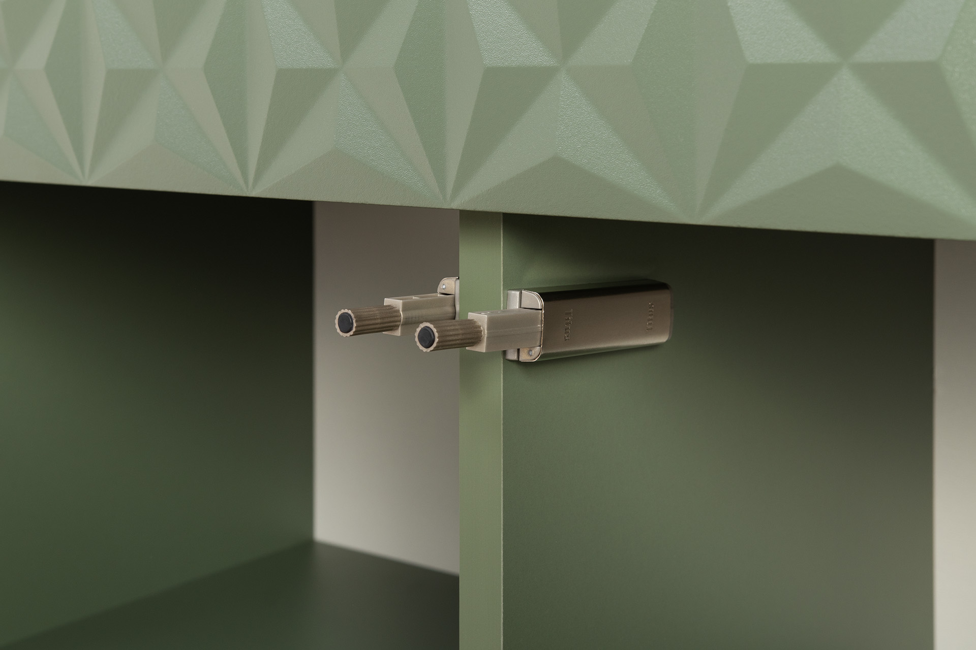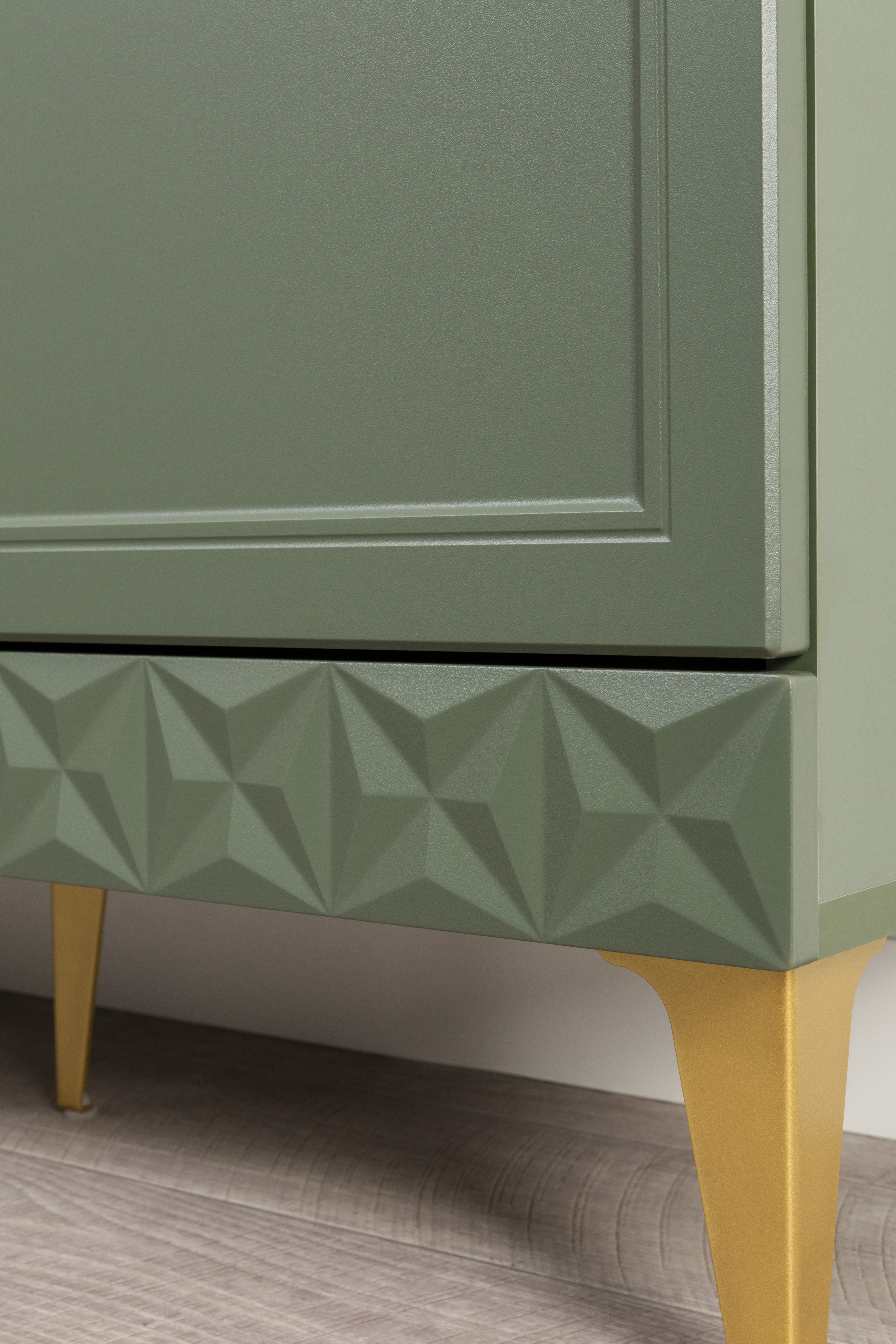 Комод Марион 16.249 дымчатый зеленый K521, олива шагрень AG 1050 ПВХ, белый PE шагрень