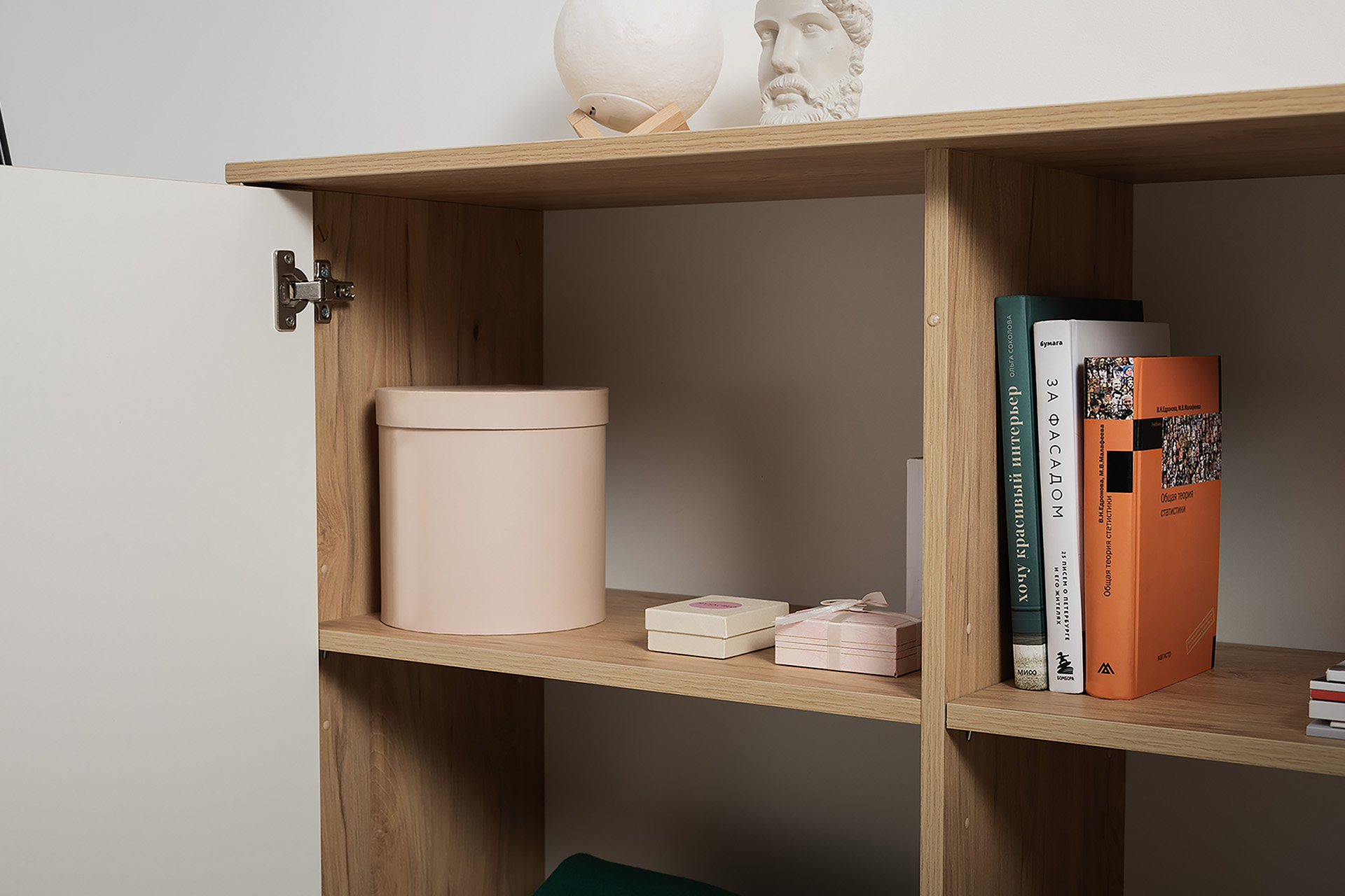 Комод Току 16.230.04 украшают фасады с фотопечатью в восточном стиле, и дополняют ручки и опоры из массива дерева. Вместительные отделения со съемными регулируемыми полками обеспечивают удобное хранение, а углубленные фасады придают конструкции стильную глубину.