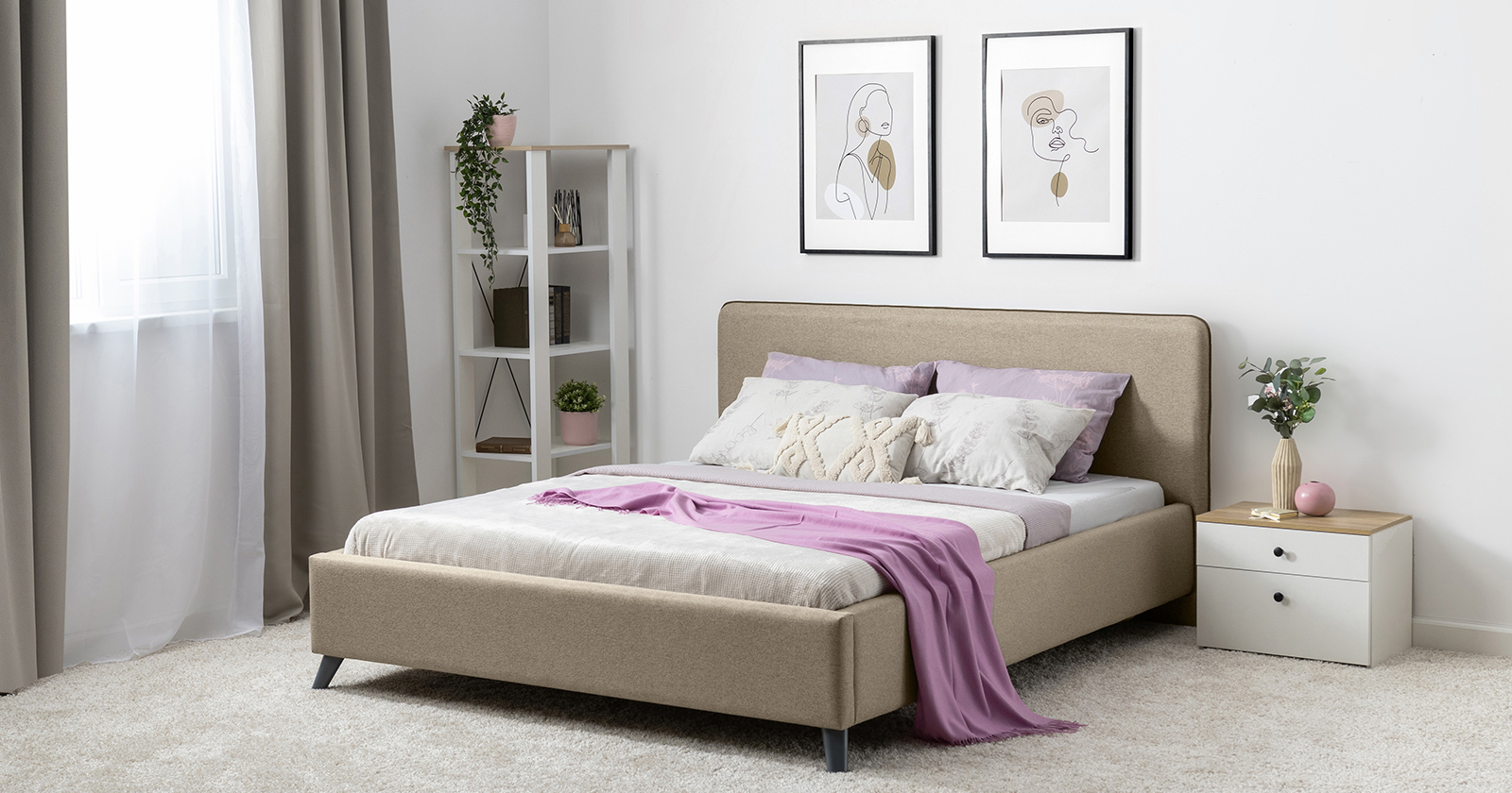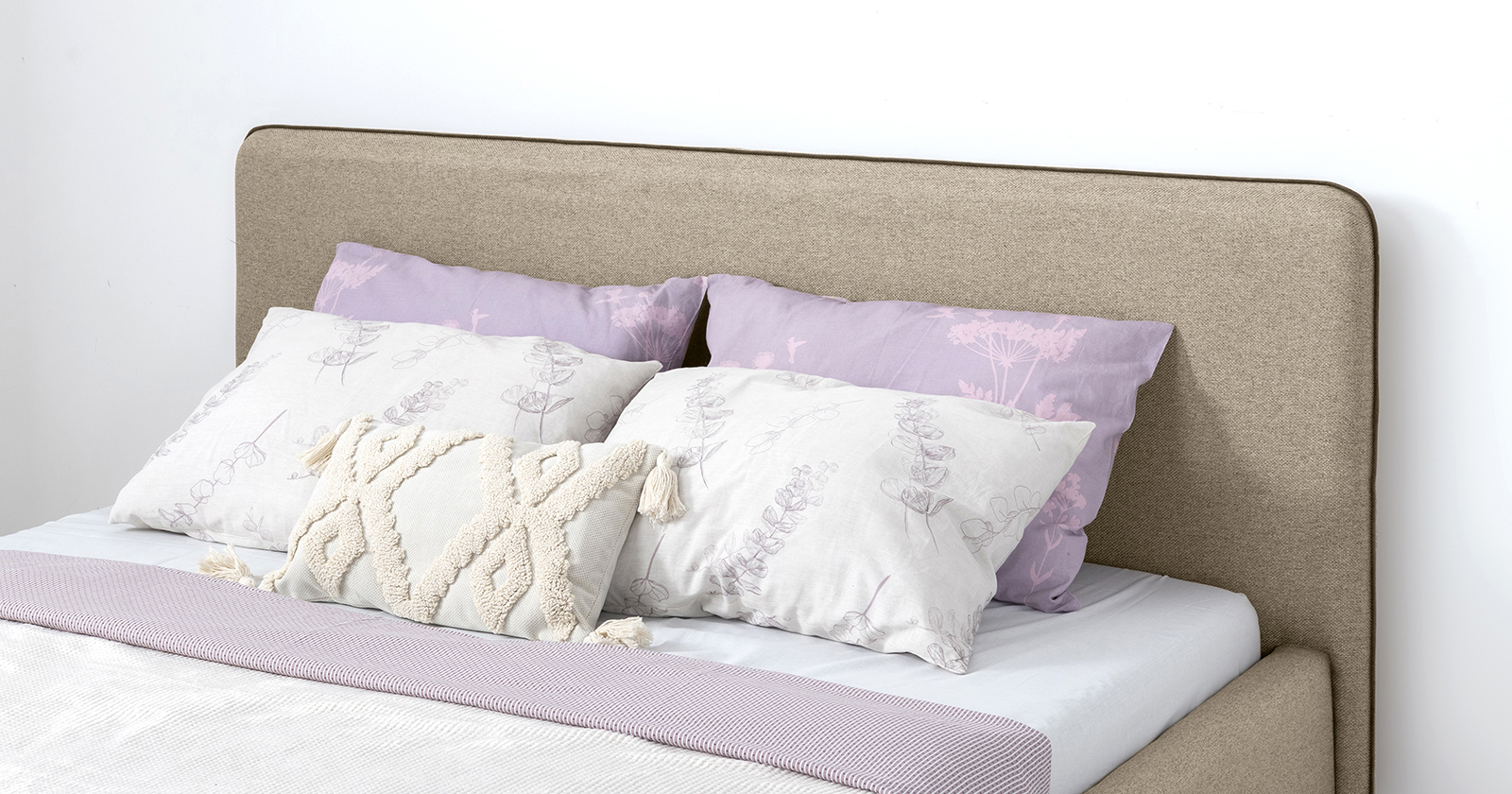 Кровать Миа 180 светло-бежевый, кант желтовато-коричневый с ортопедическим основанием и подъемным механизмом