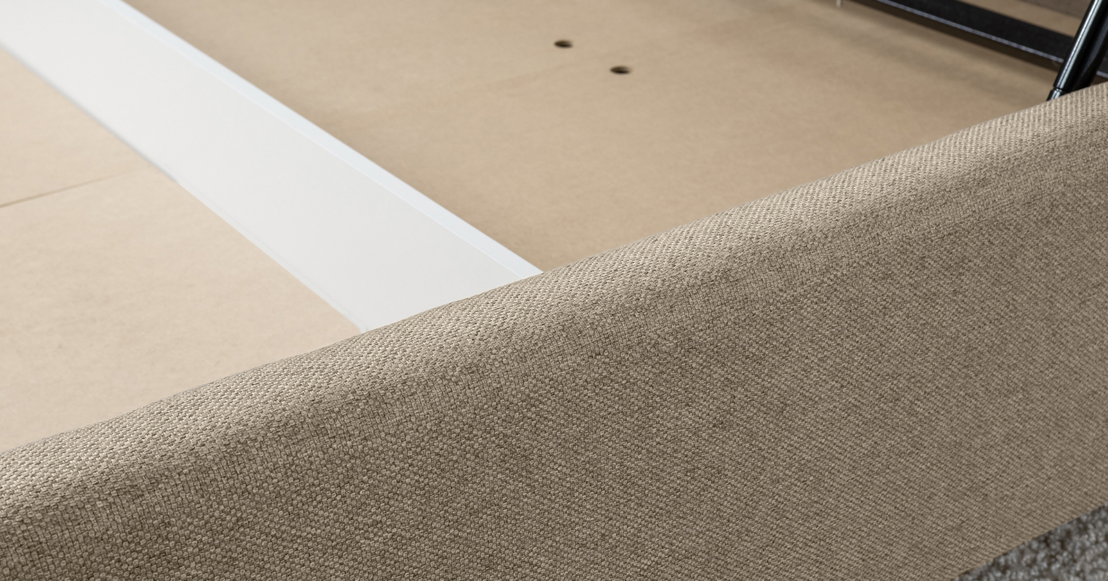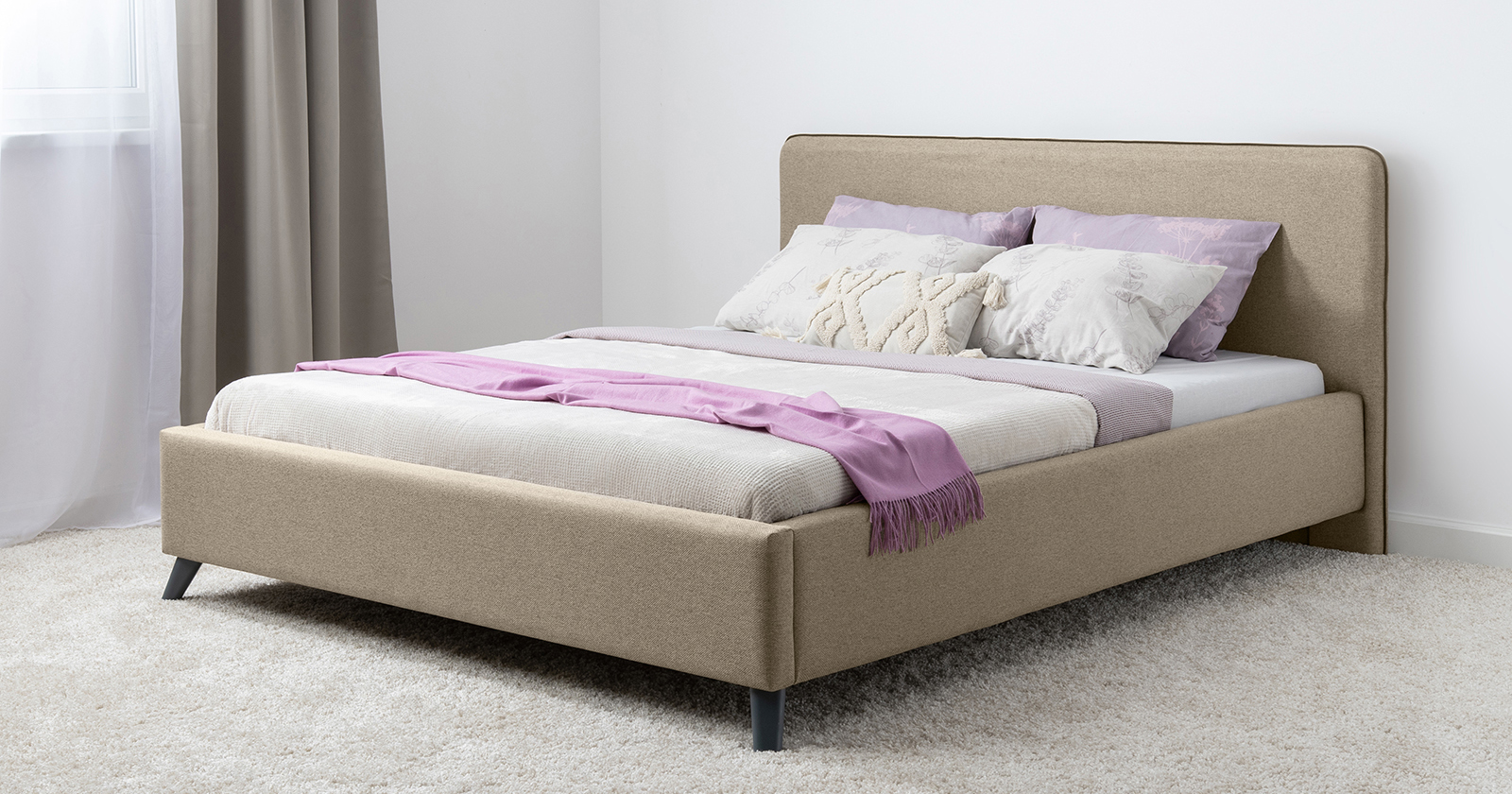 Кровать Миа 160 рогожка светло-бежевый, кант желтовато-коричневый с ортопедическим основанием и подъемным механизмом