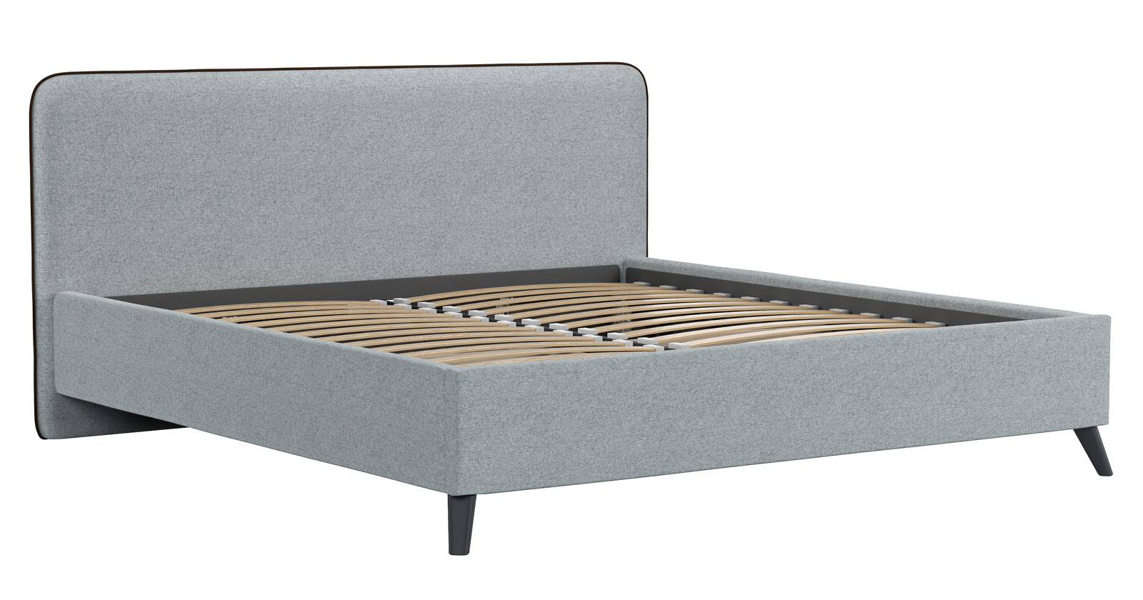 Кровать Миа 160 рогожка серый, кант желтовато-коричневый с ортопедическим основанием и подъемным механизмом