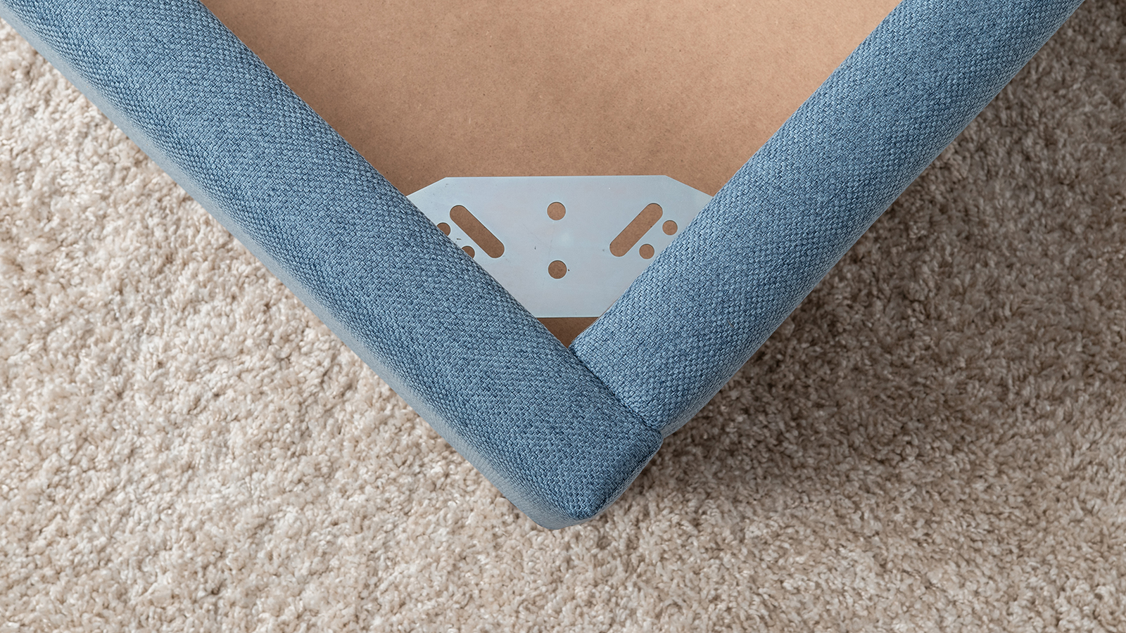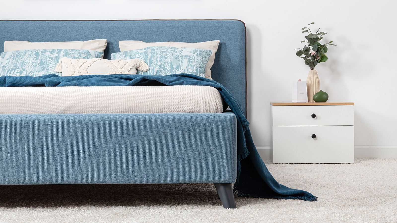 Кровать Миа 180 светло-синий, кант желтовато-коричневый с ортопедическим основанием и подъемным механизмом