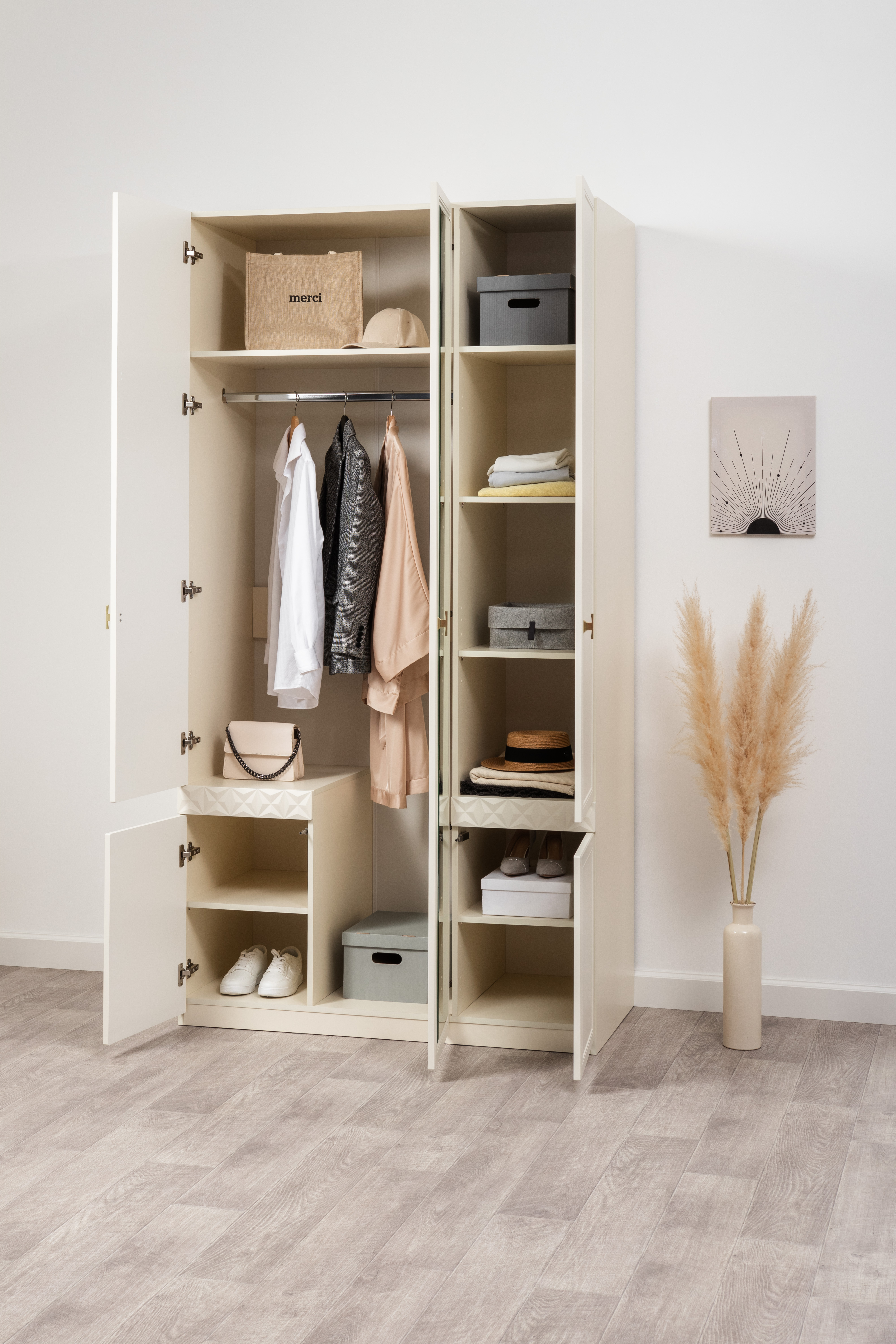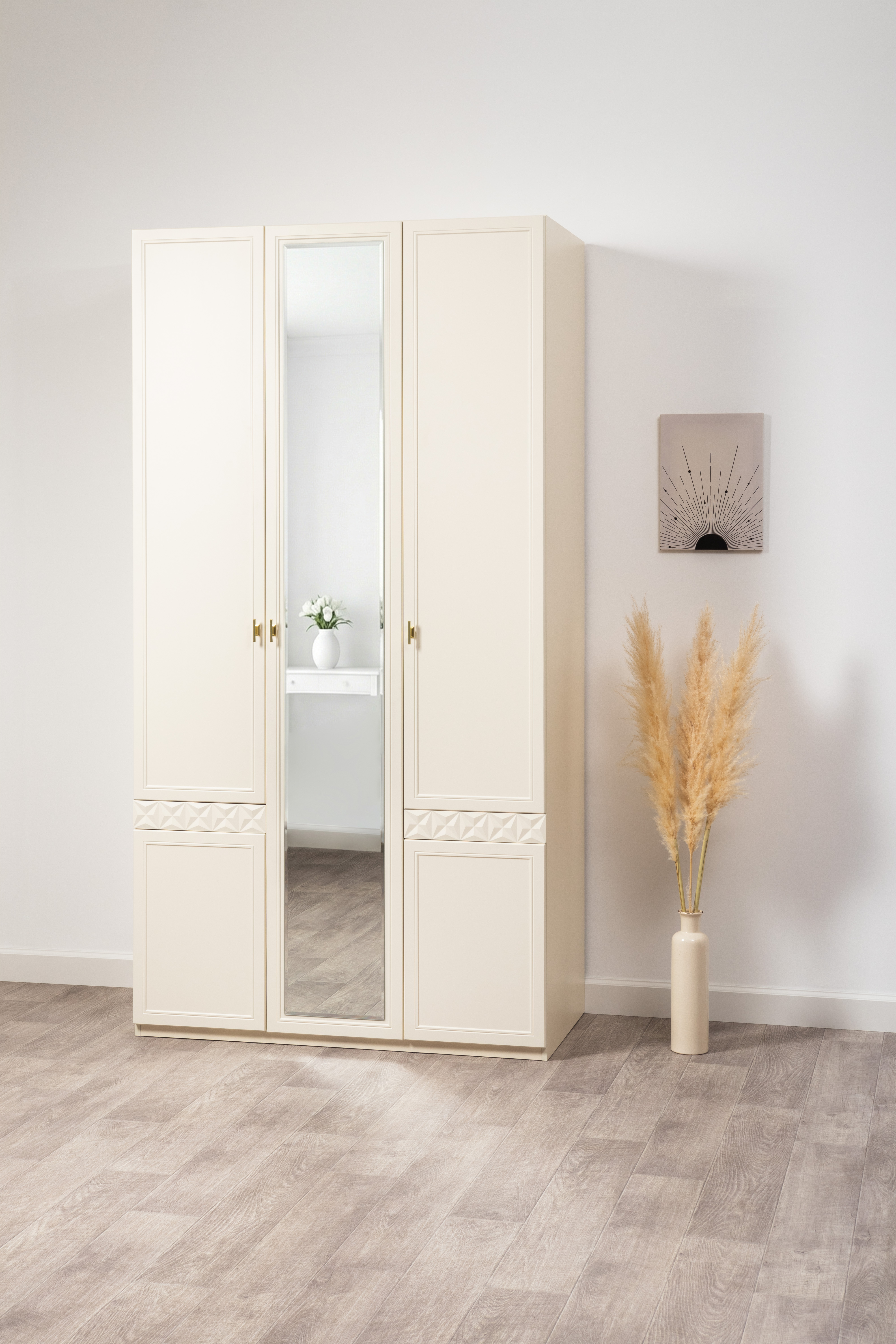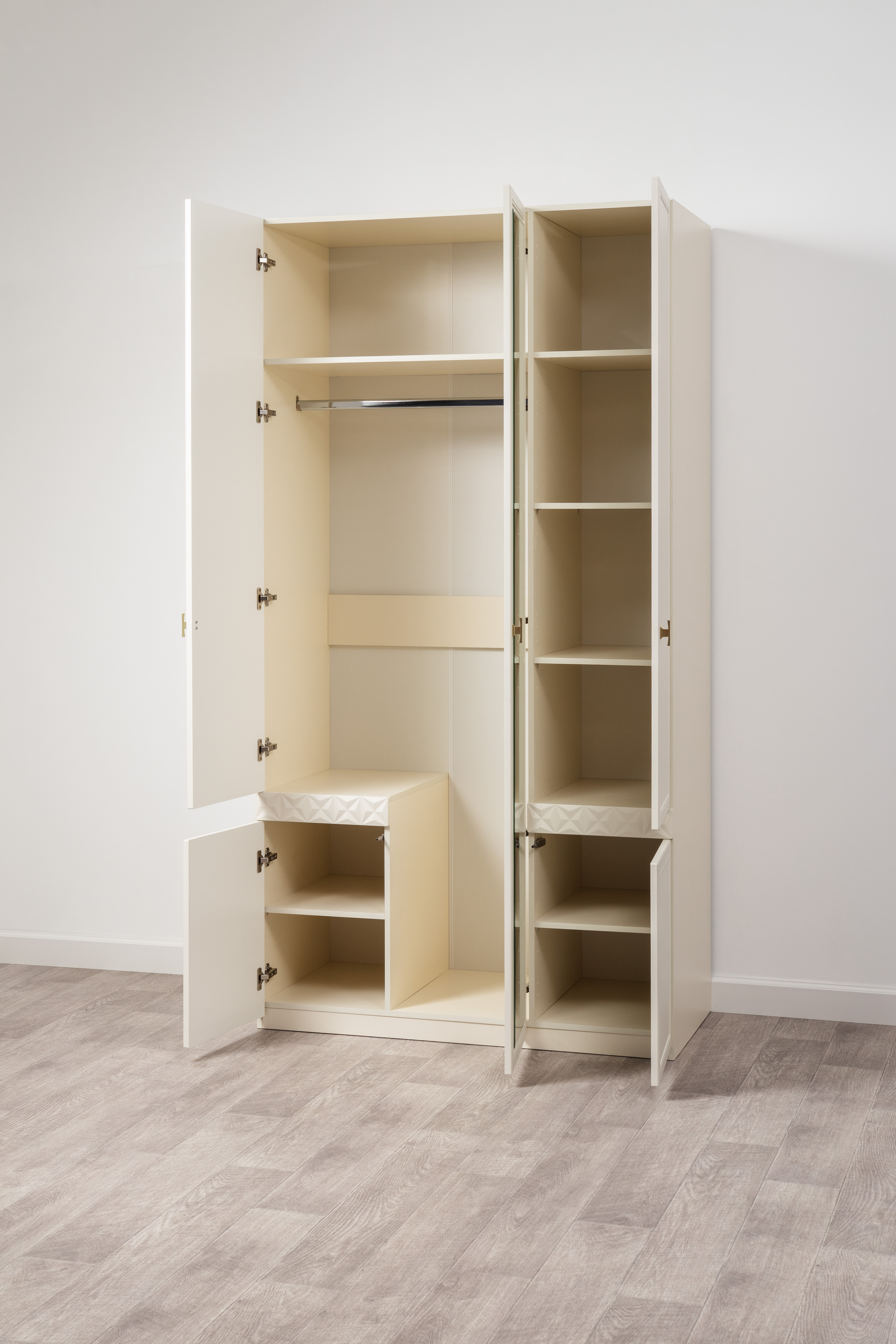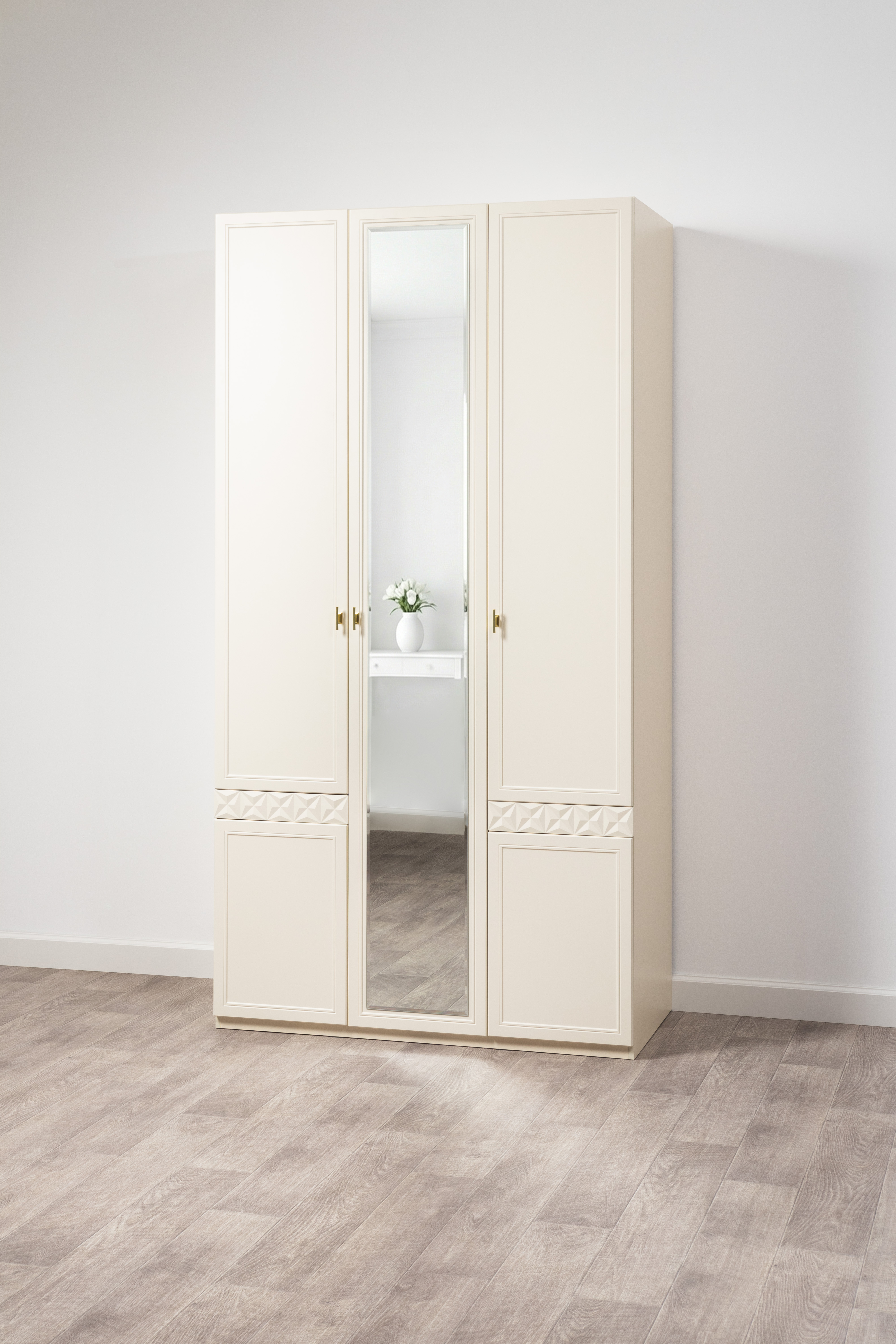 Шкаф для одежды Марион 16.340.03 слоновая кость С341 PE, слоновая кость 6898 ПВХ (собирается на любую сторону)