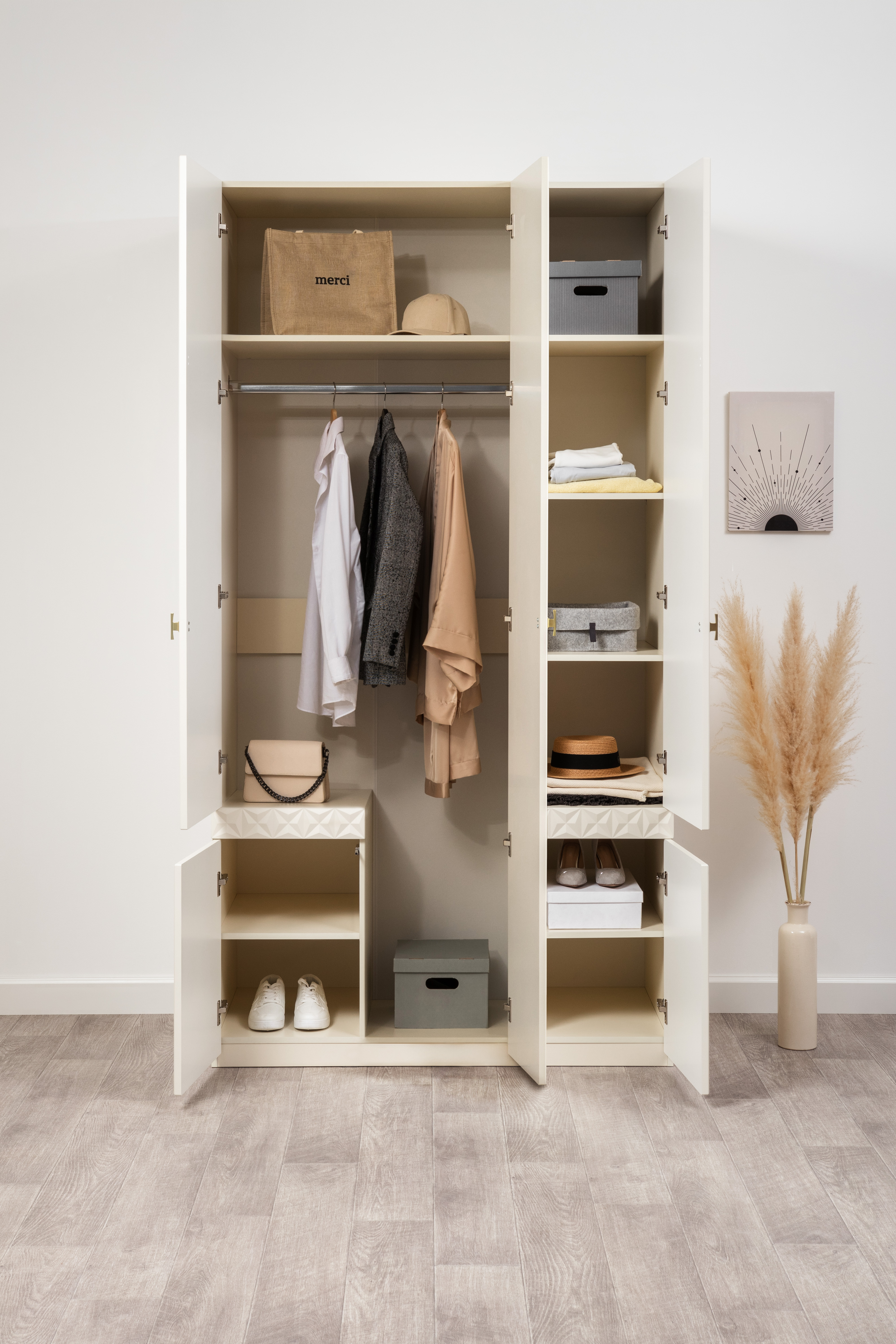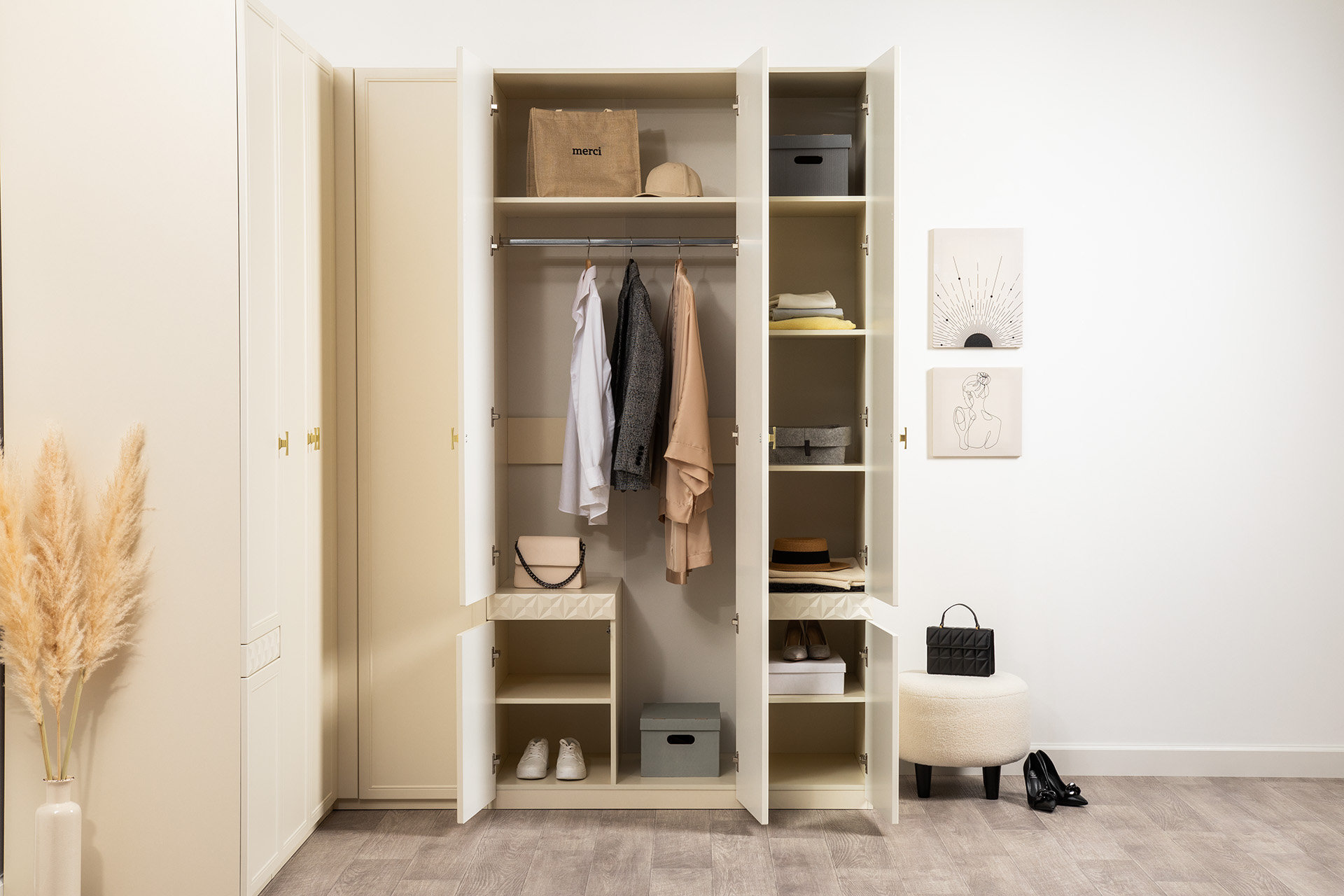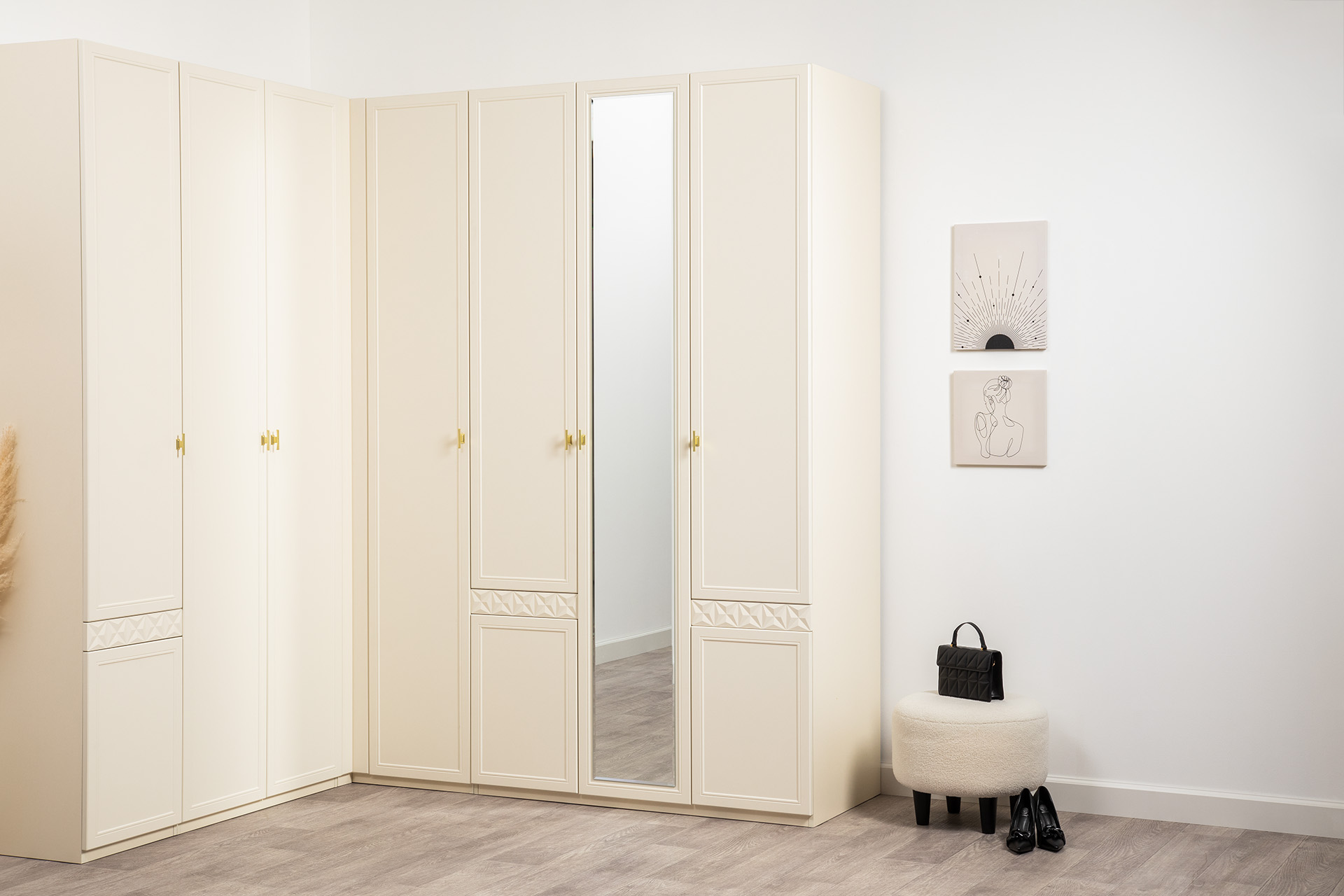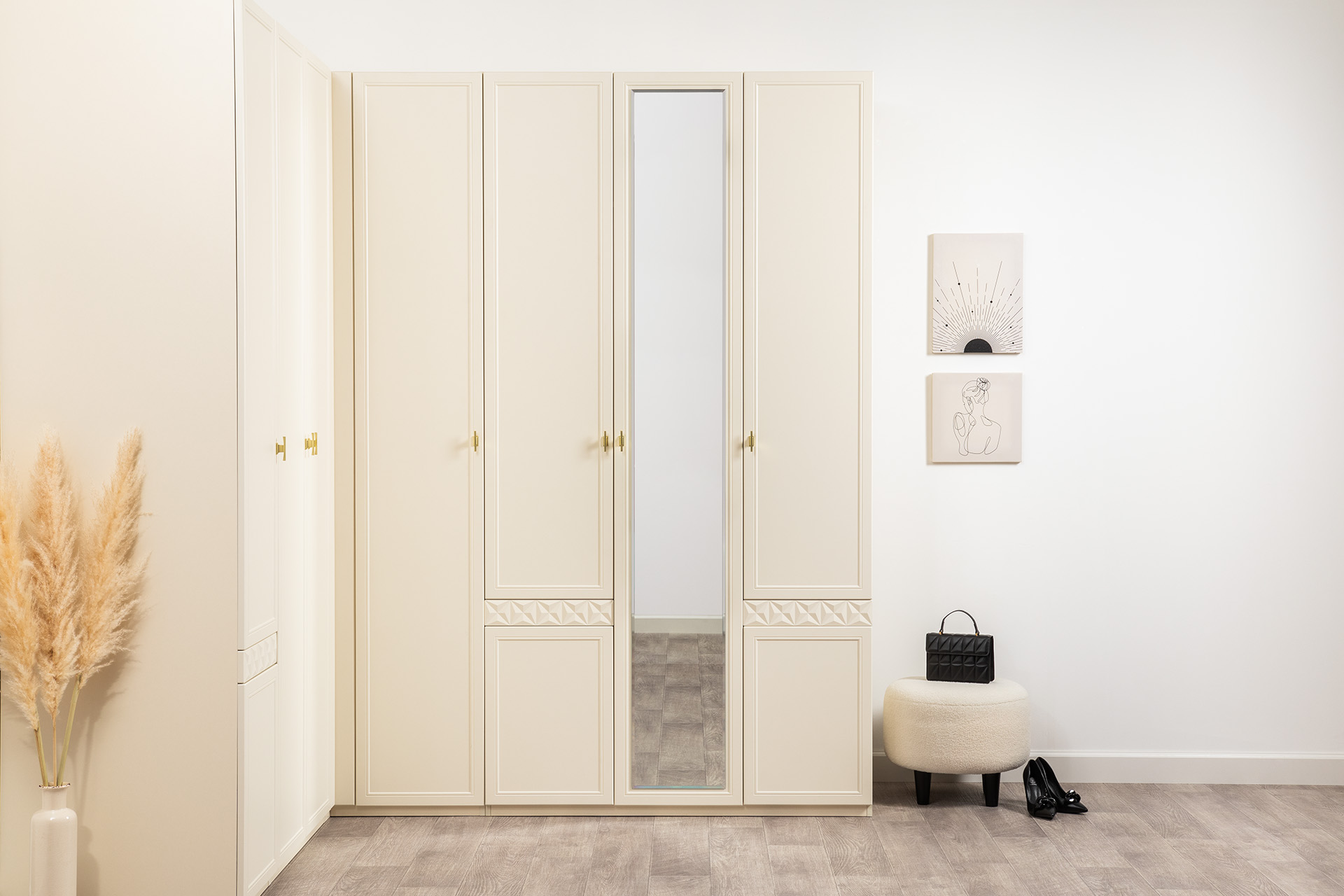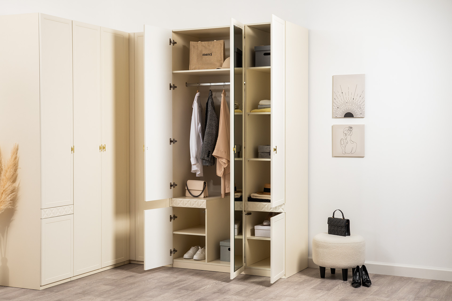 Шкаф для одежды Марион 16.340.03 слоновая кость С341 PE, слоновая кость 6898 ПВХ (собирается на любую сторону)