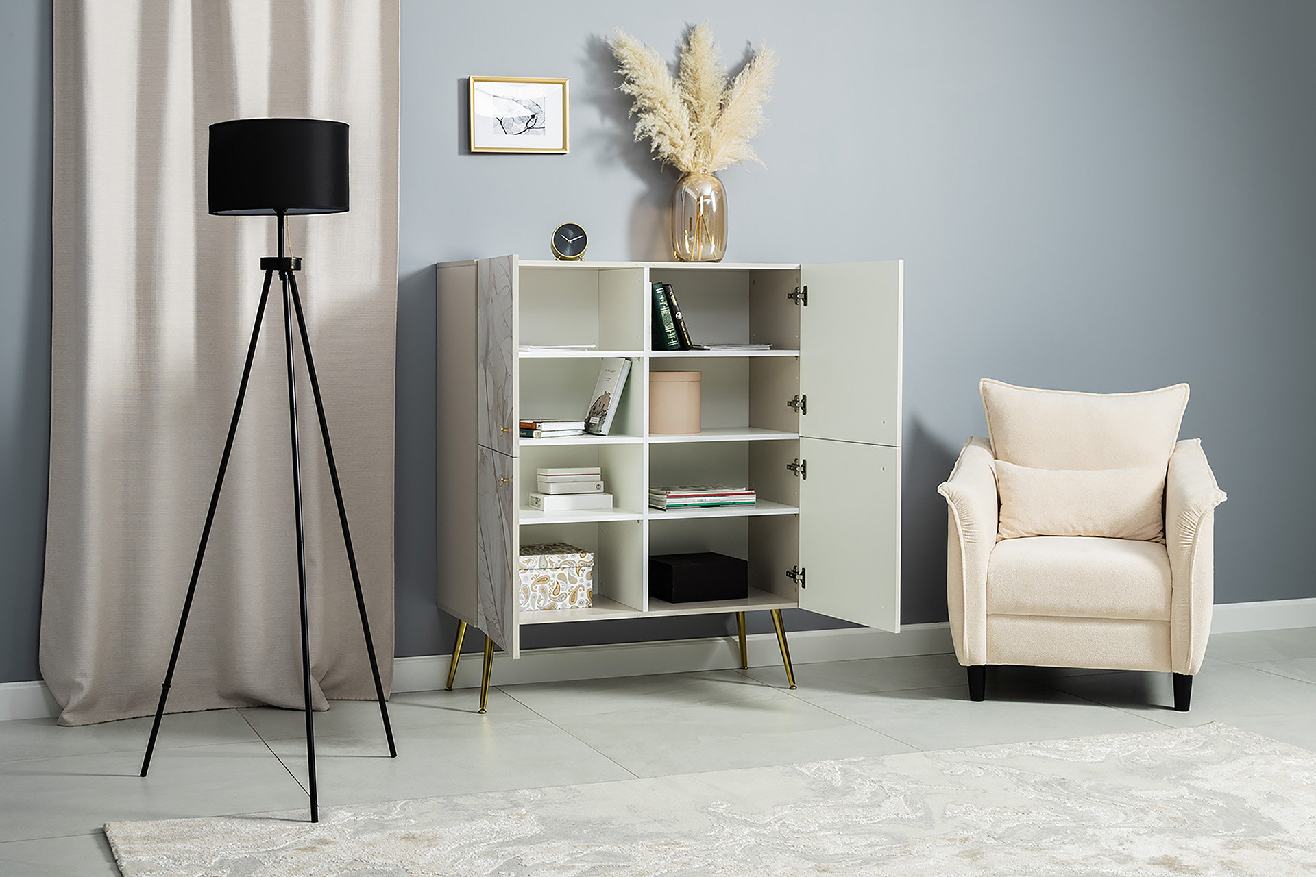 Шкаф Флоу 16.329 кашемир 5981 BS, белый PE шагрень, фотопечать