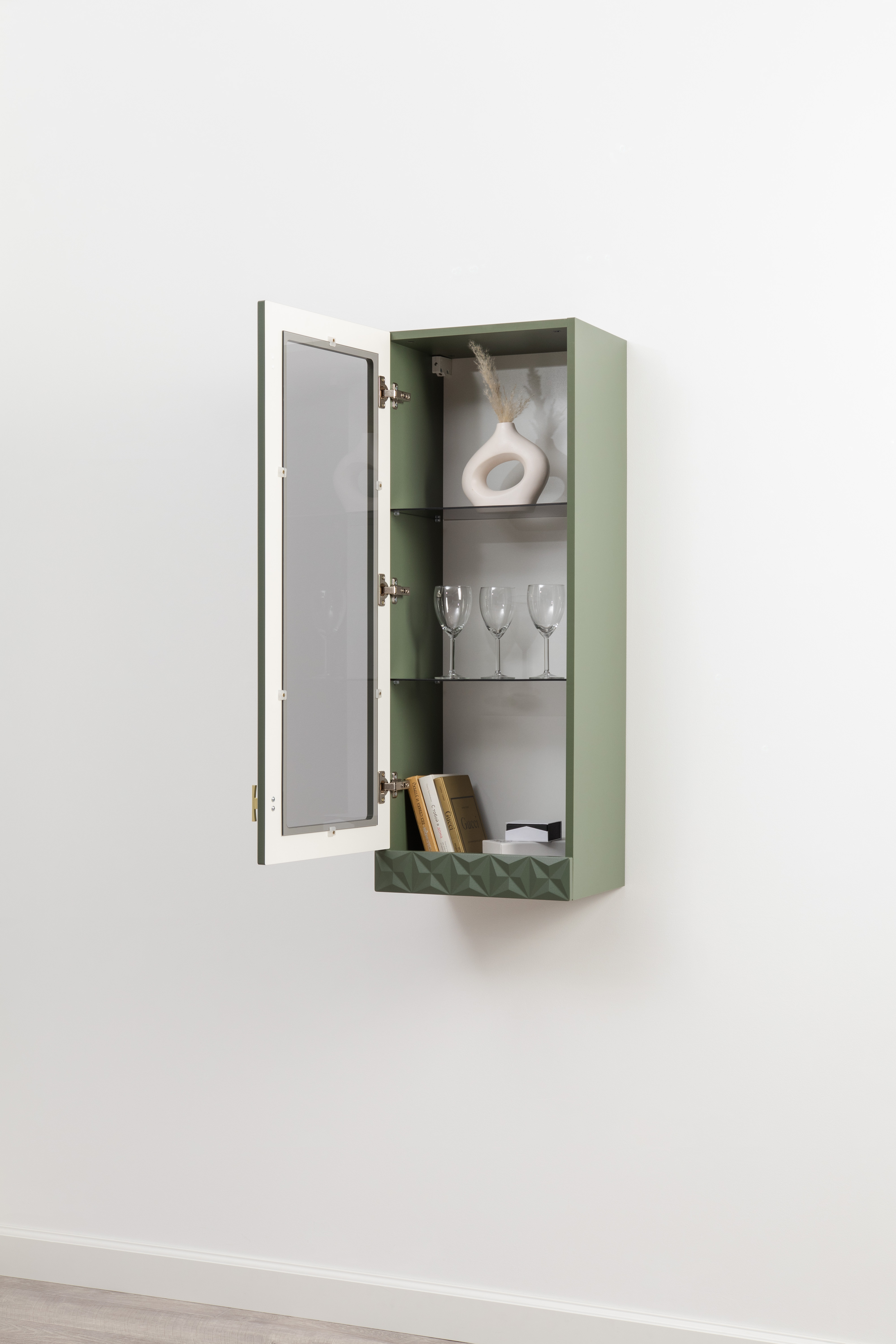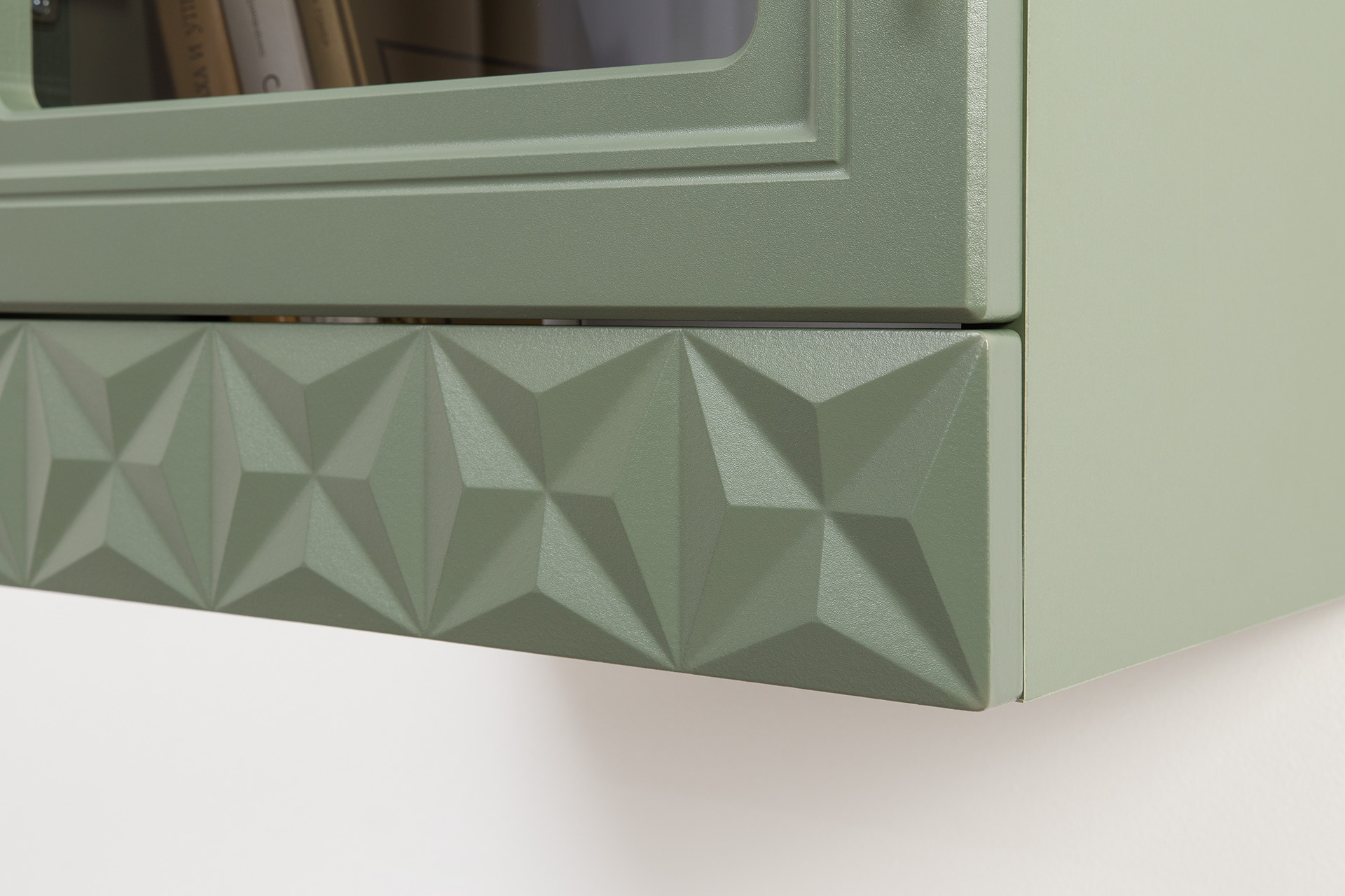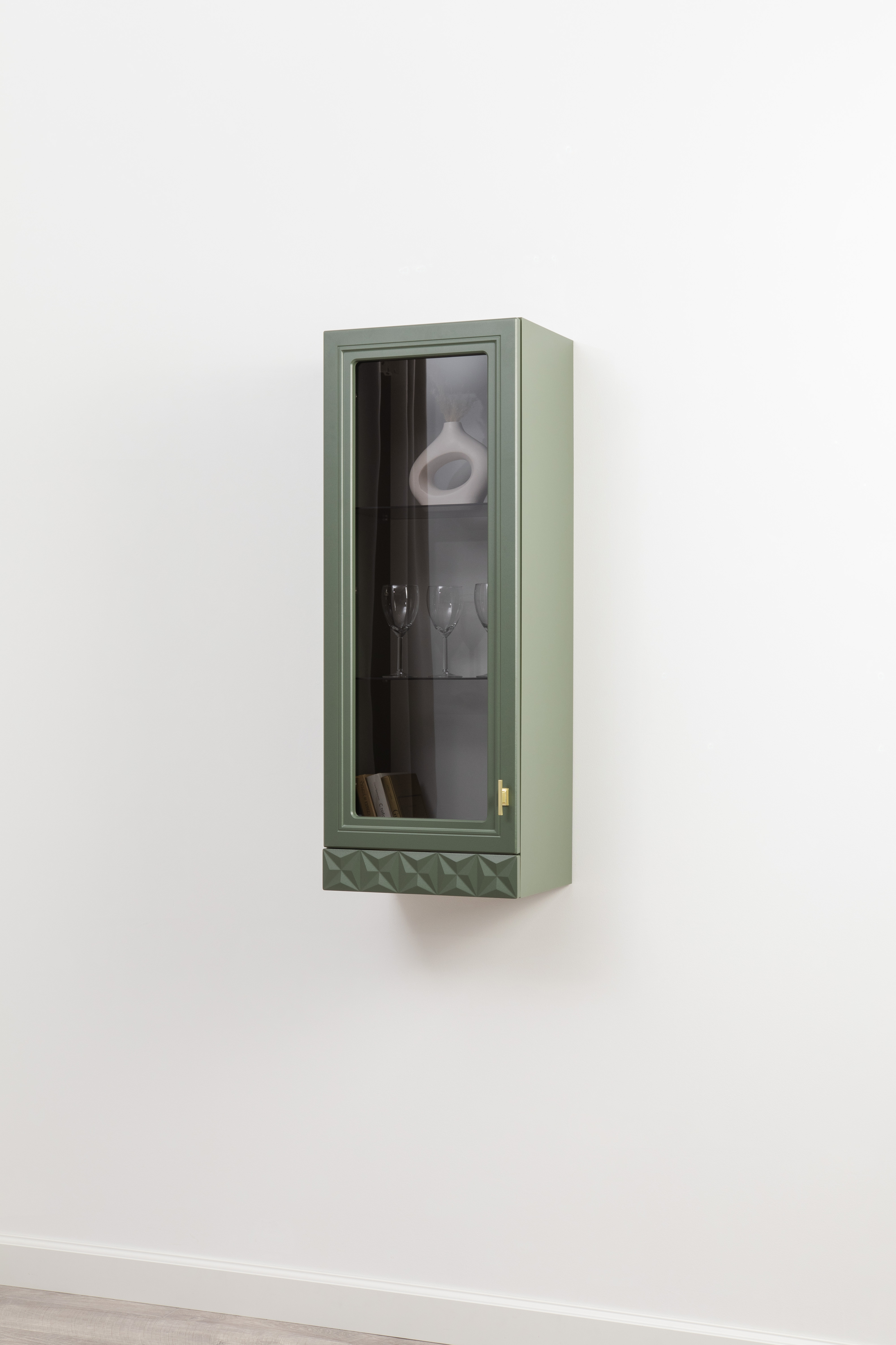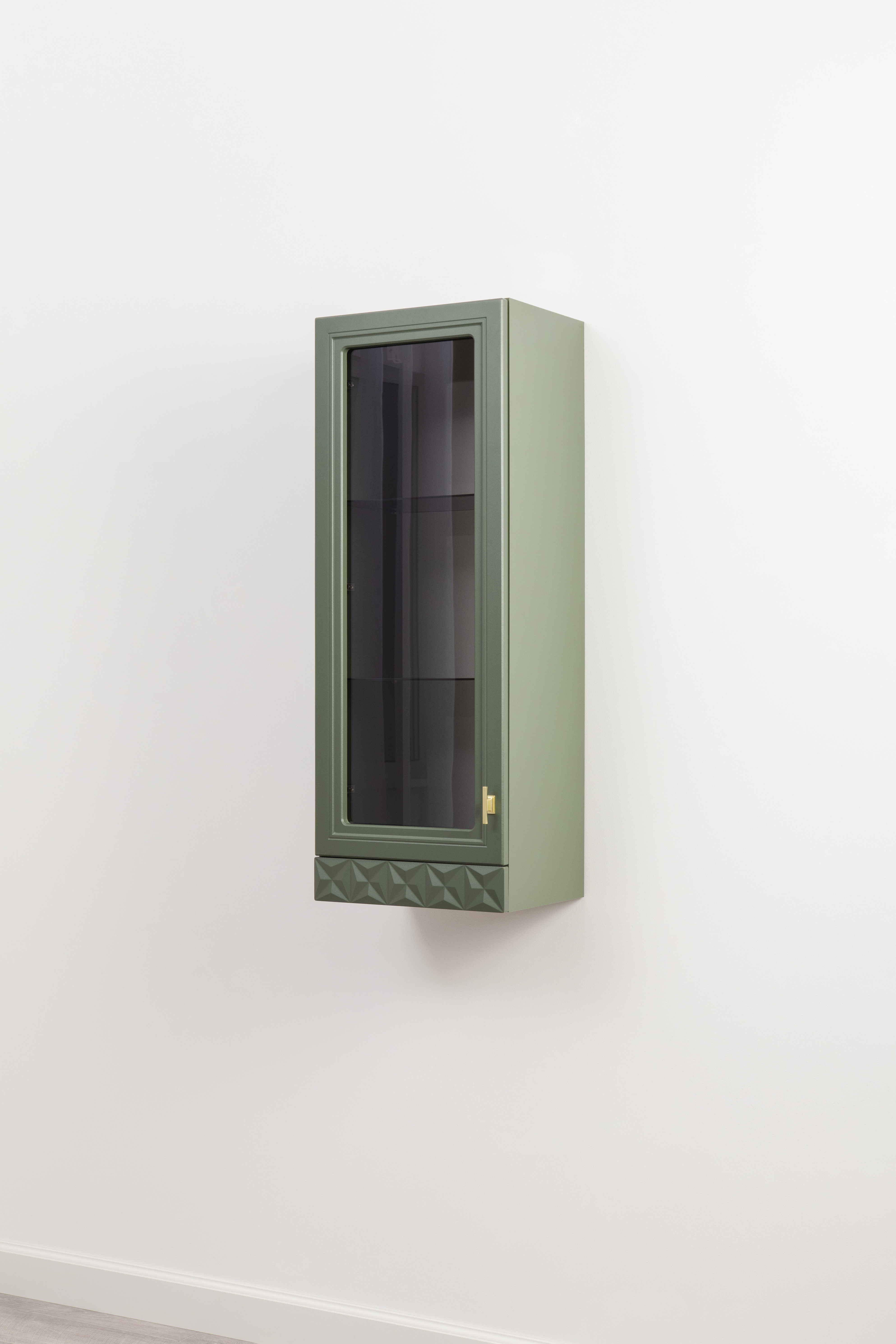 Шкаф навесной Марион 16.334 дымчатый зеленый K521, олива шагрень AG 1050 ПВХ (собирается на любую сторону)