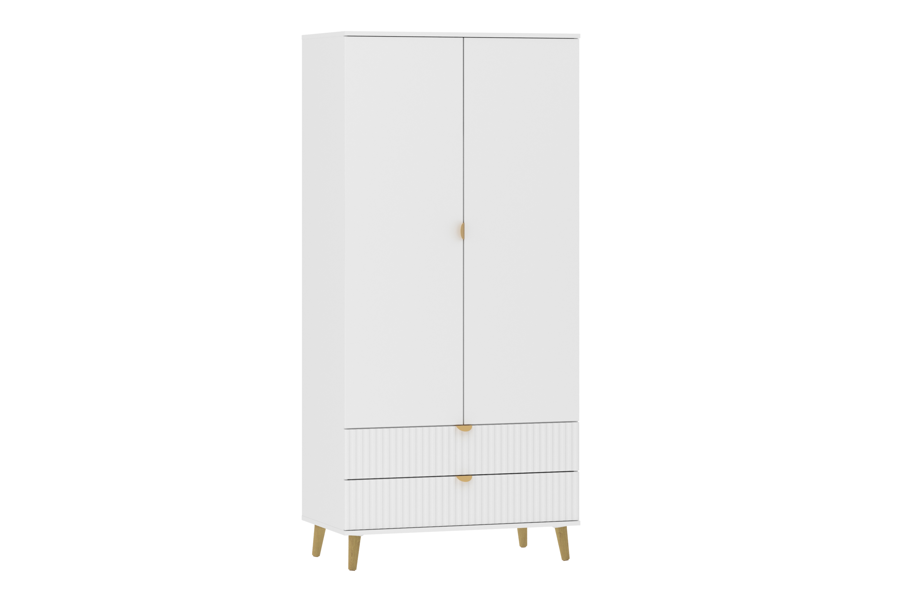 Модульная композиция включает 2 тумбы, оснащенные выдвижными ящиками, которые открываются плавно и бесшумно благодаря шариковым направляющим, комод и шкаф, в котором удобно организовать предметы одежды, при этом высокие опоры облегчают процесс уборки.