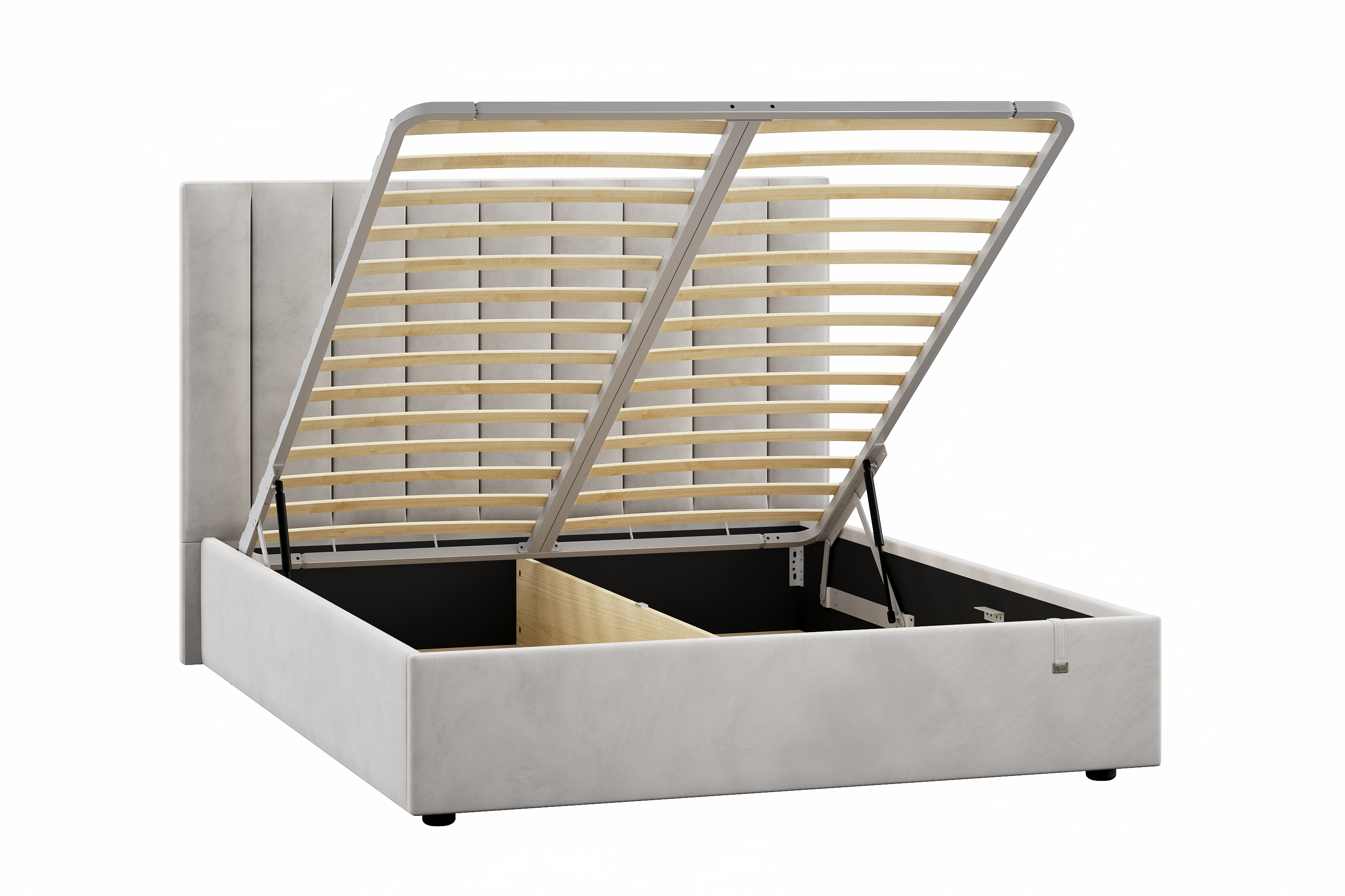Подъемный механизм легок в управлении, а вместительный короб внутри кровати подойдет для хранения подушек, белья и других вещей. Мягкие тканевые ручки облегчают процесс подъема основания. С кроватями можно приобрести комод и тумбу Эстер. Ткань обивки возможно выбрать в цвет с кроватью из представленных вариантов велюра.