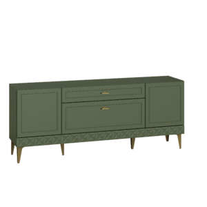 Изящные линии, глубокая фрезеровка фасадов из МДФ и благородные оттенки. Утончённая «Слоновая кость» и изысканная «Олива Шагрень» с глубоким зелёным тоном — создают атмосферу уюта, тепла и благородства. Металлические ручки и опоры золотого цвета придают мебели утончённый блеск, а петли и направляющие с доводчиками обеспечивают плавное и бесшумное закрытие фасадов.